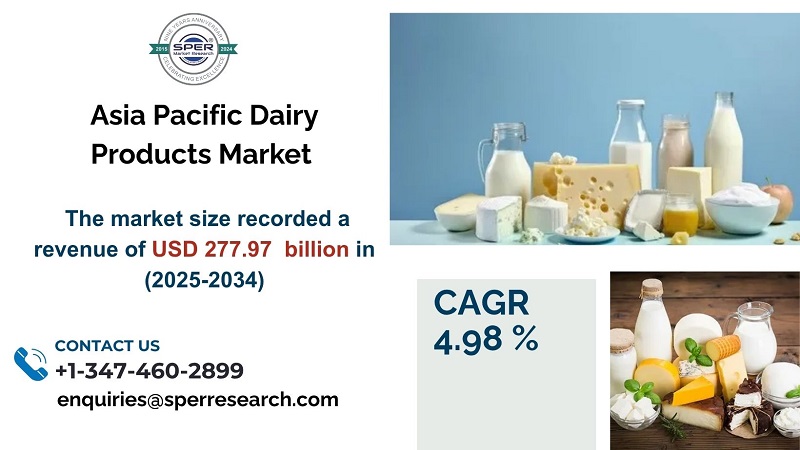 According to SPER market research, ‘Asia Pacific Dairy Products Market Size- By Product- Regional Outlook, Competitive Strategies and Segment Forecast to 2034’ state that the Asia Pacific Dairy Products Market is predicted to reach 277.97 billion by 2034 with a CAGR of 4.98%.