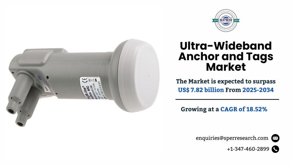 According to SPER market research, ‘Global Ultra-Wideband Anchor and Tags Market Size- By Component, By Positioning System, By Range, By Application, By End User – Regional Outlook, Competitive Strategies and Segment Forecast to 2034’ state that the Global Ultra-Wideband Anchor and Tags Market is predicted to reach 7.82 billion by 2034 with a CAGR of 18.52%.